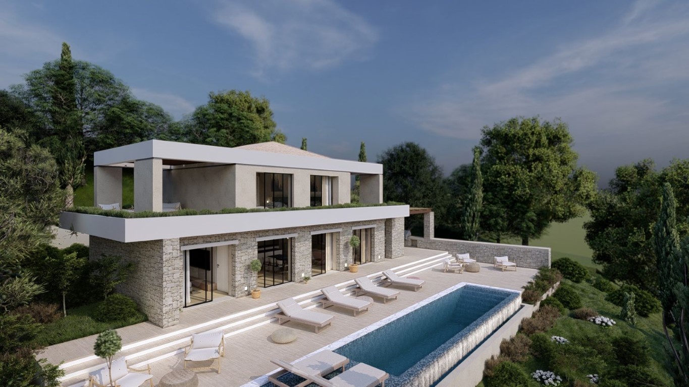 Ανέγερση Λιθόκτιστης πολυτελούς Διώροφης Βίλλας με υπόγειο και Κολυμβητική δεξαμενή (Μελέτη - Επίβλεψη - Κατασκευή) |